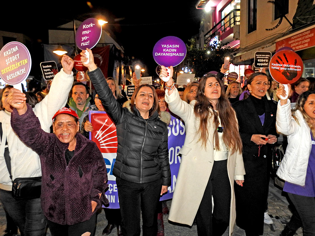 25 Kasım Kadına Yönelik Şiddete Karşı Uluslararası Mücadele Günü nedeniyle Çeşme'de gerçekleştirilen yürüyüşün fotoğrafları...